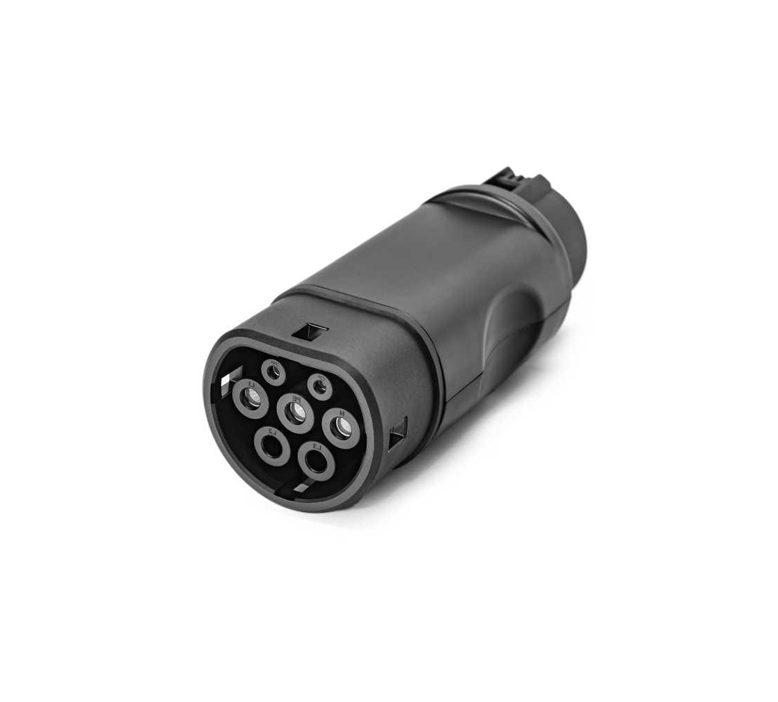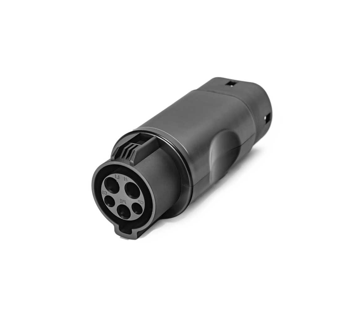 Este adaptador é o ideal para quem procura uma solução compacta para carregar com um EVSE ou cabo Mennekes Type 1, um carro que tenha uma ficha Type 2.