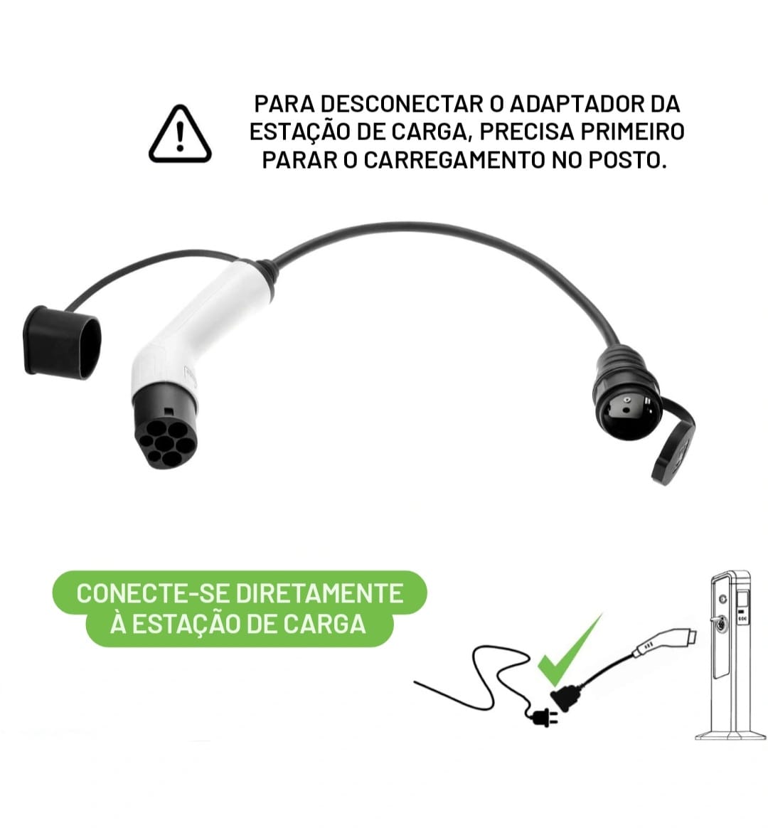 Ideal para carregar veículos elétricos que não tenham ligação directa com ficha Mennekes (ex: motas ou carros sem tomada mennekes).