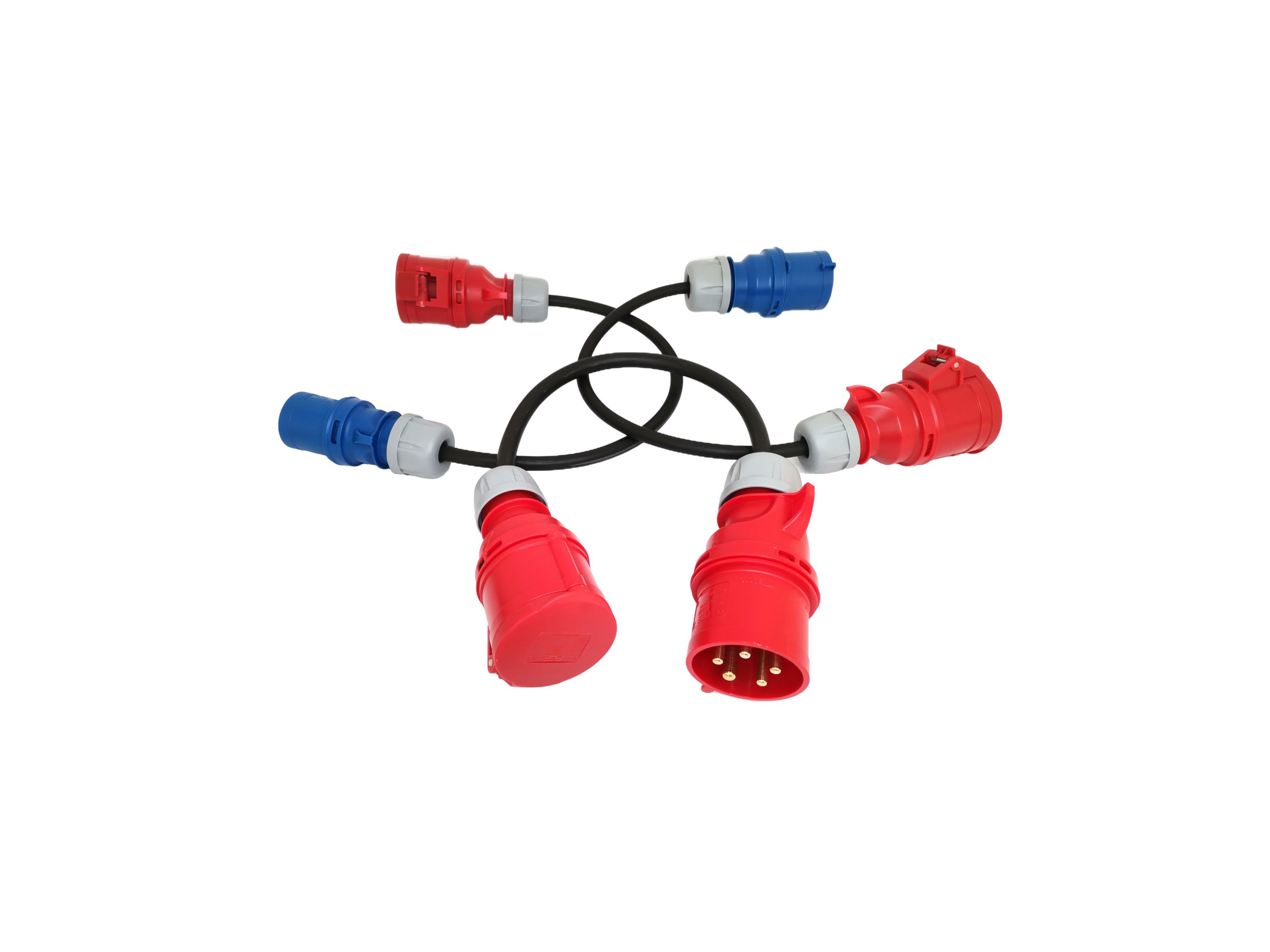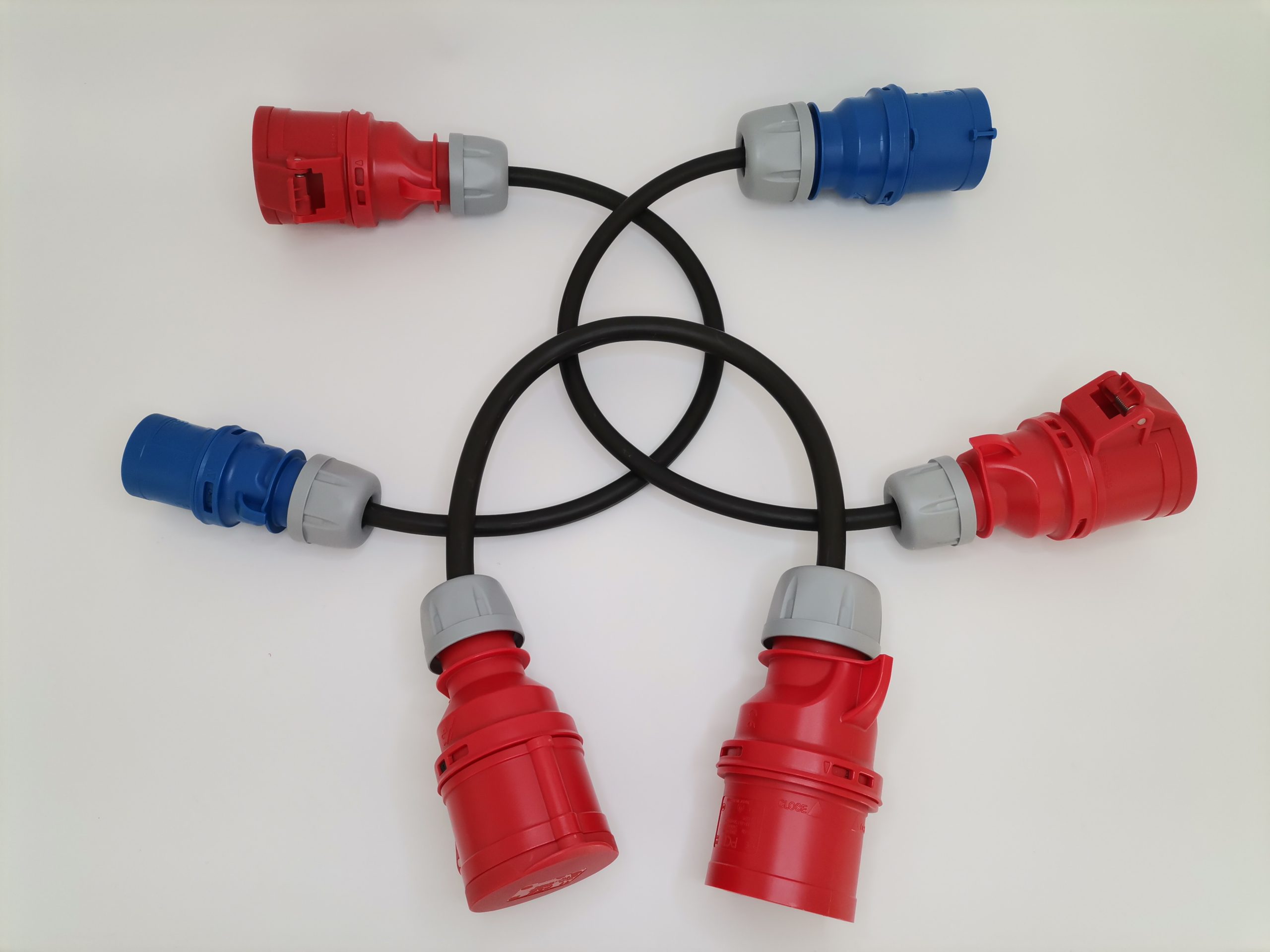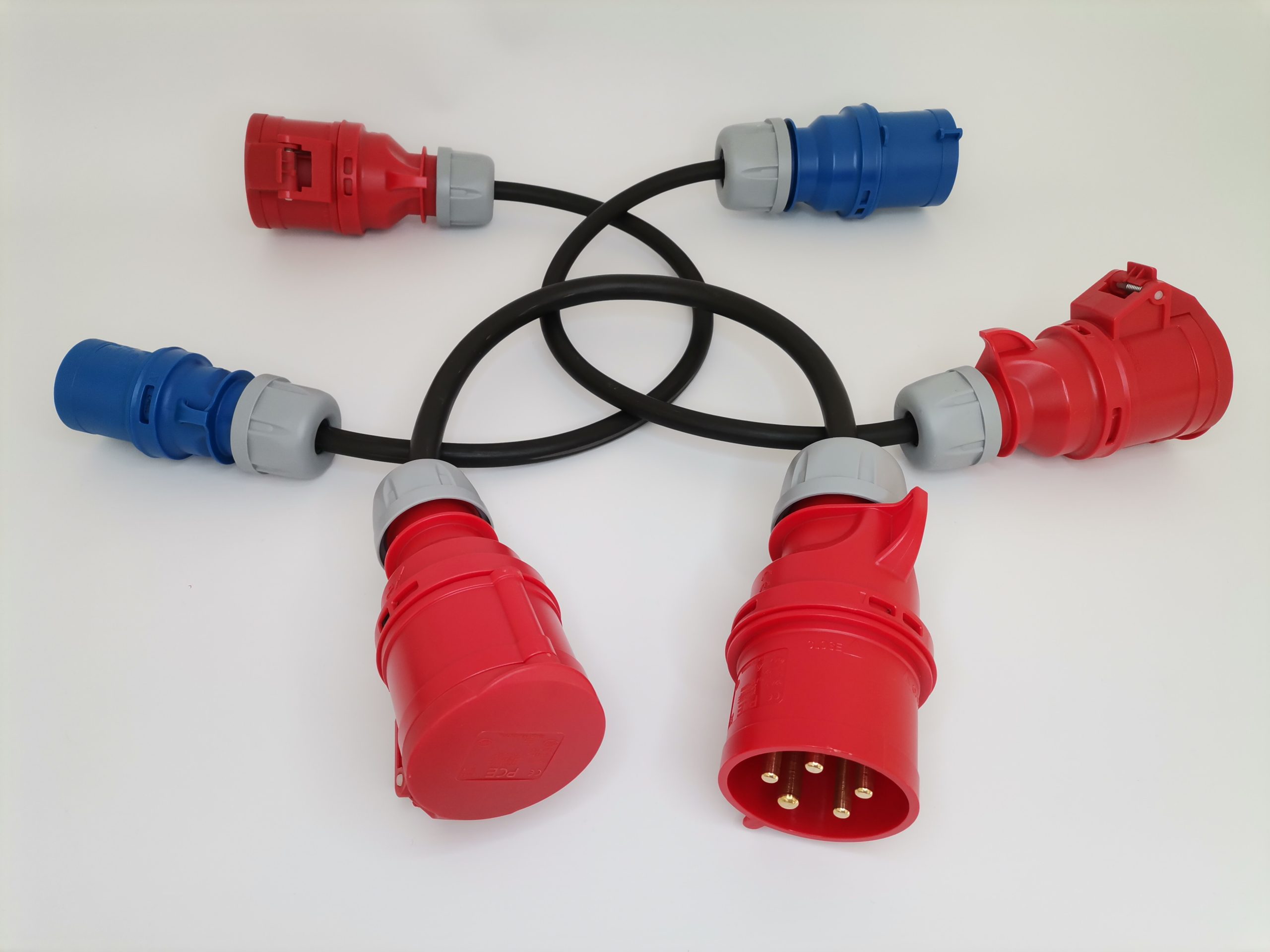 Adaptadores com 60cm com cabo 3G4, 3G4 e 5G4 respectivamente. Fichas PCE de elevado IP, terminais cravados e com isolamento.