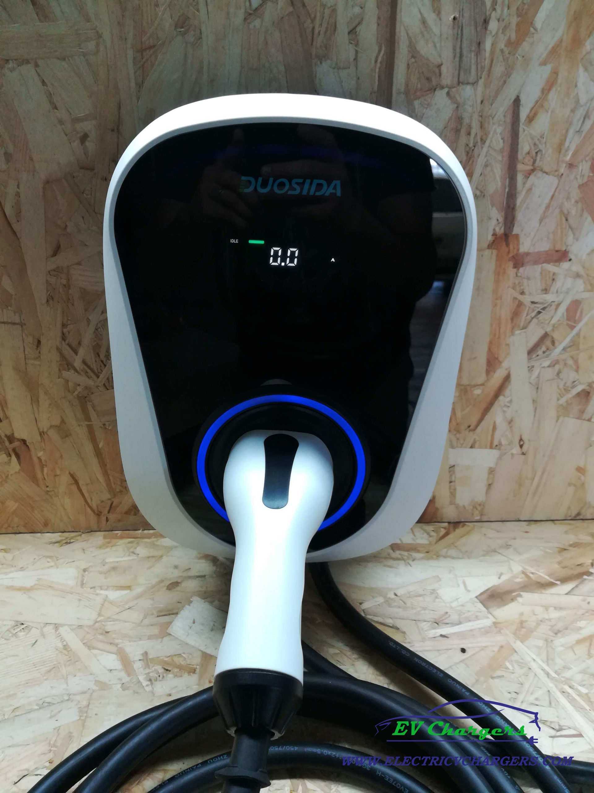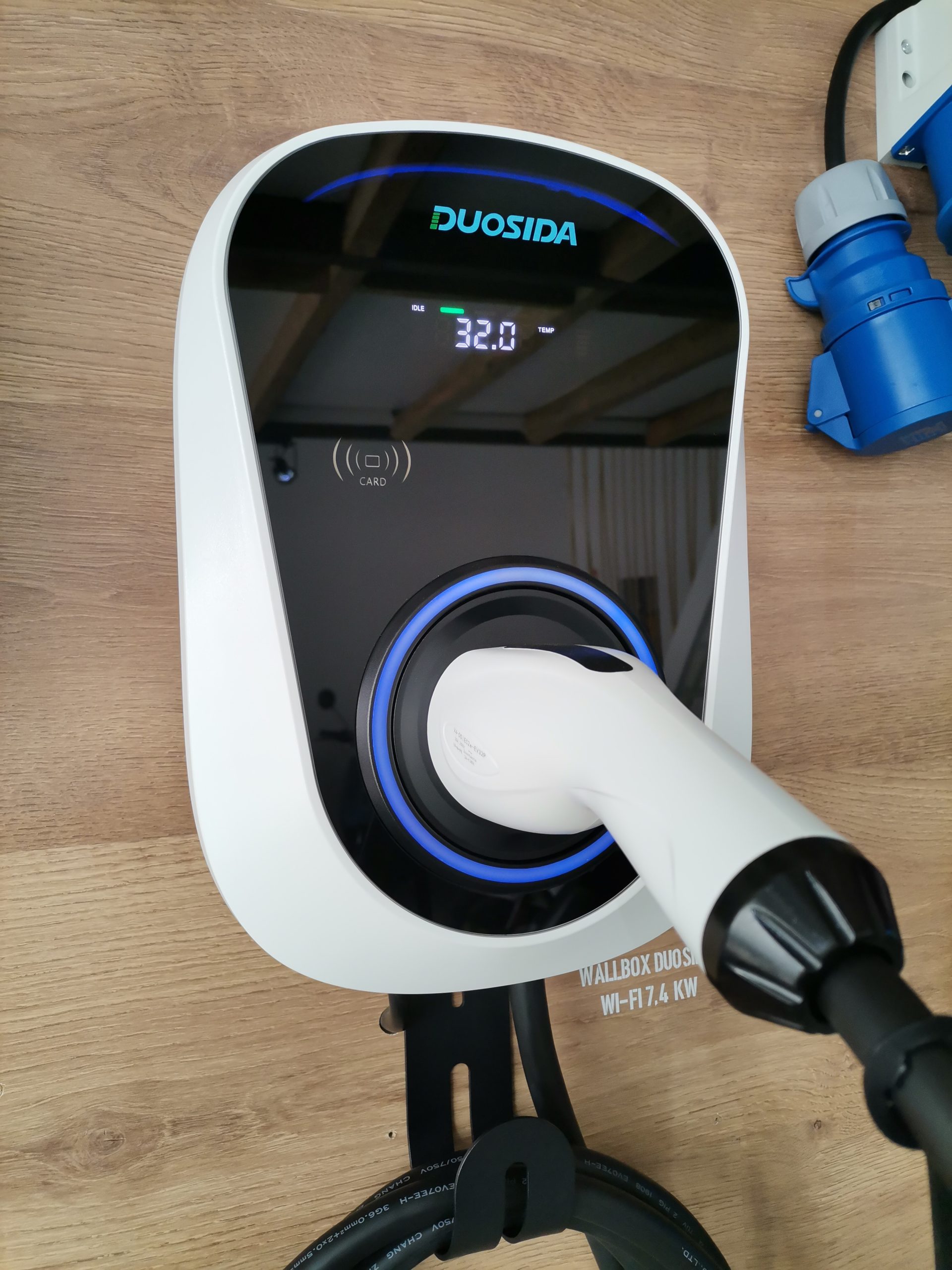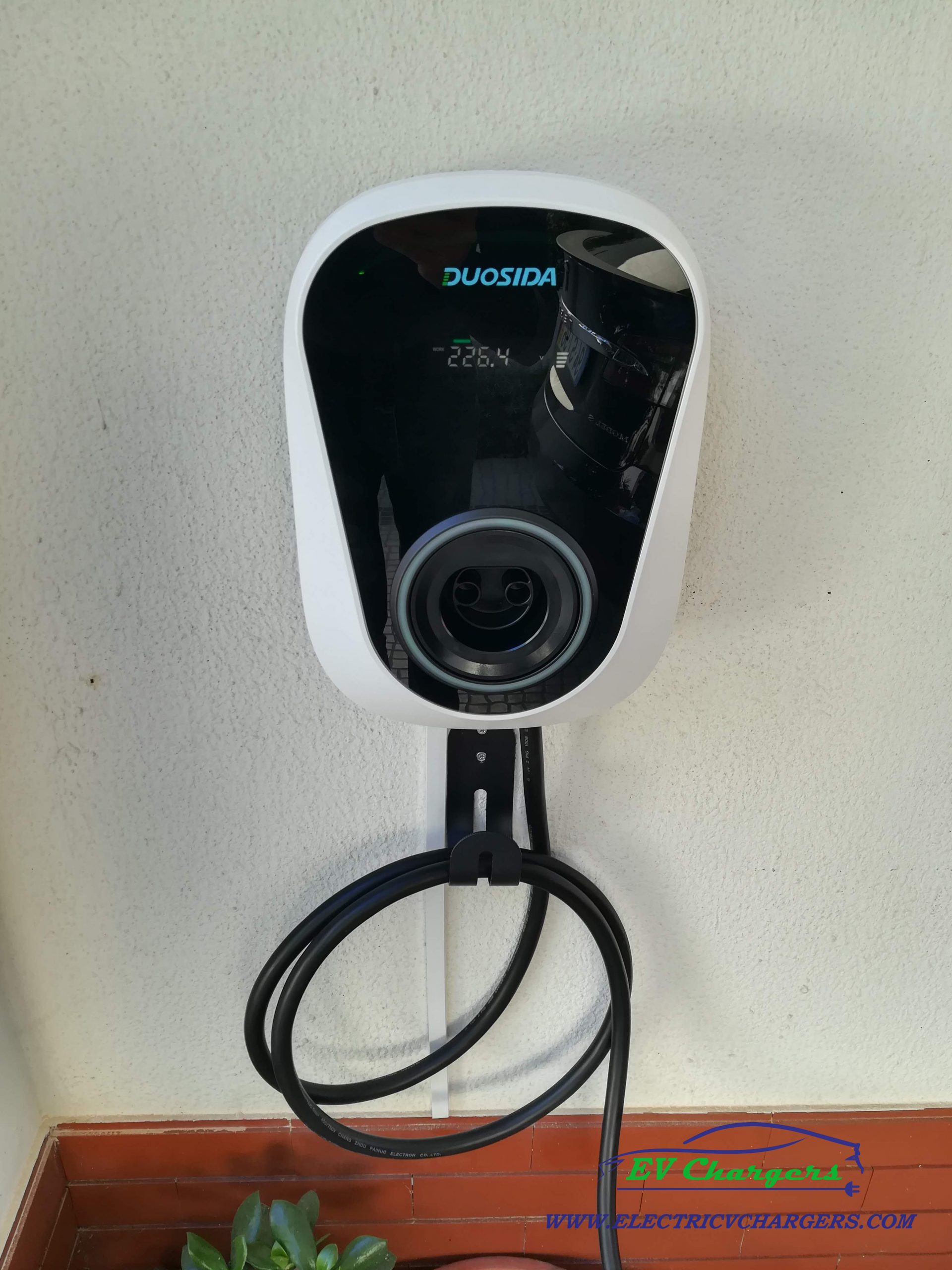 Esta Wallbox Duosida regulável entre 6A-32A é a wallbox ideal para uma instalação monofasica devido ao facto de poder ser controlada por wi-fi e app, dispõe de um pequeno display informativo com dados referentes ao carregamento.