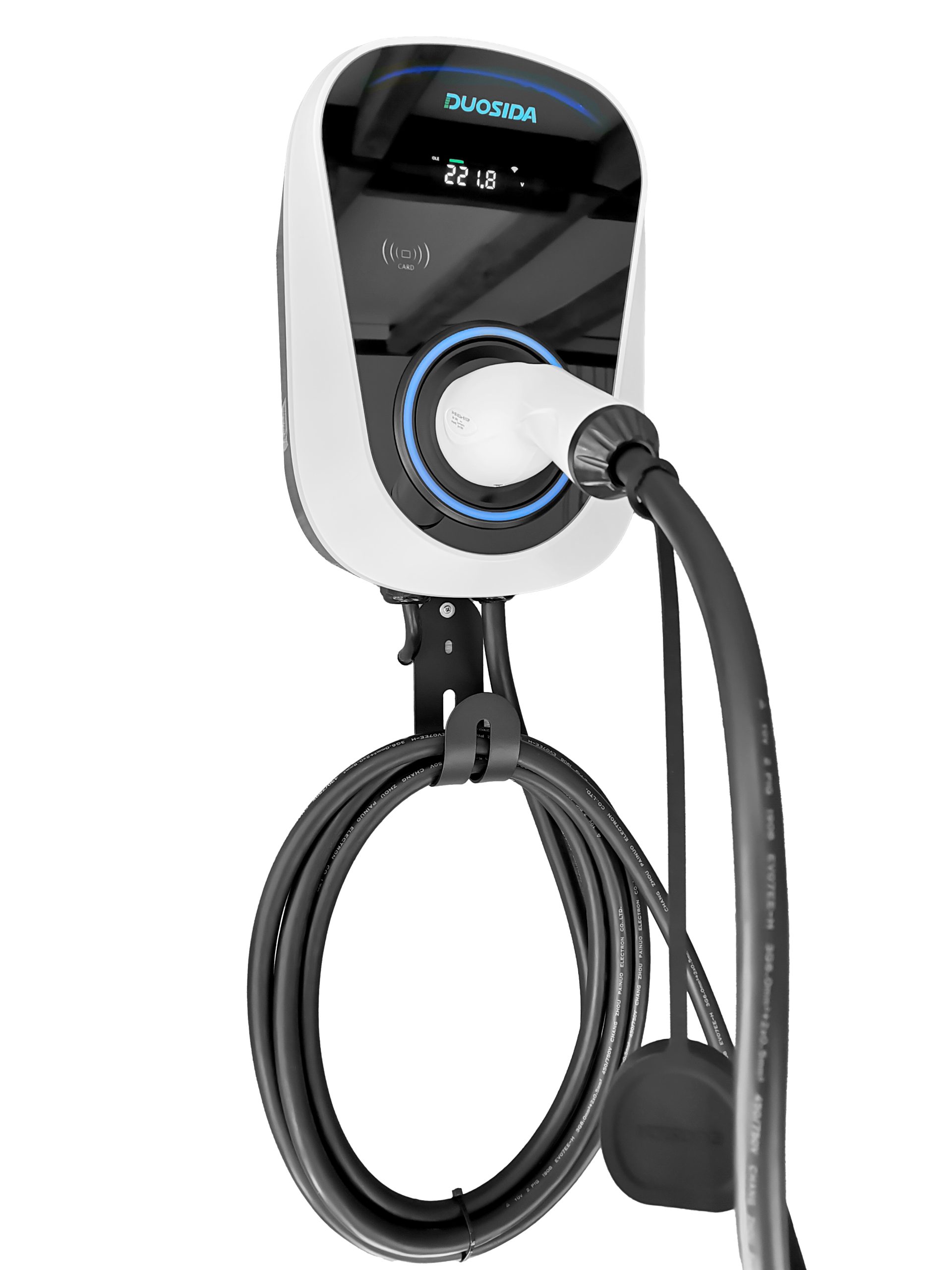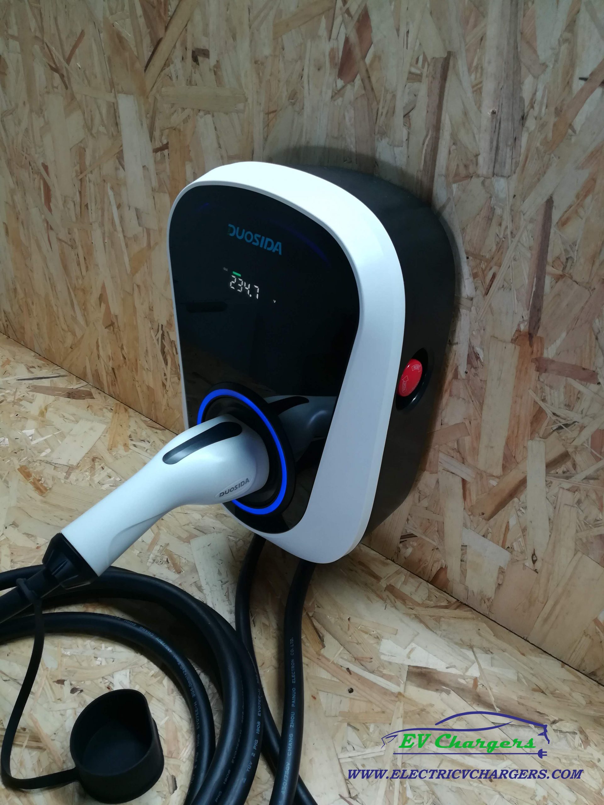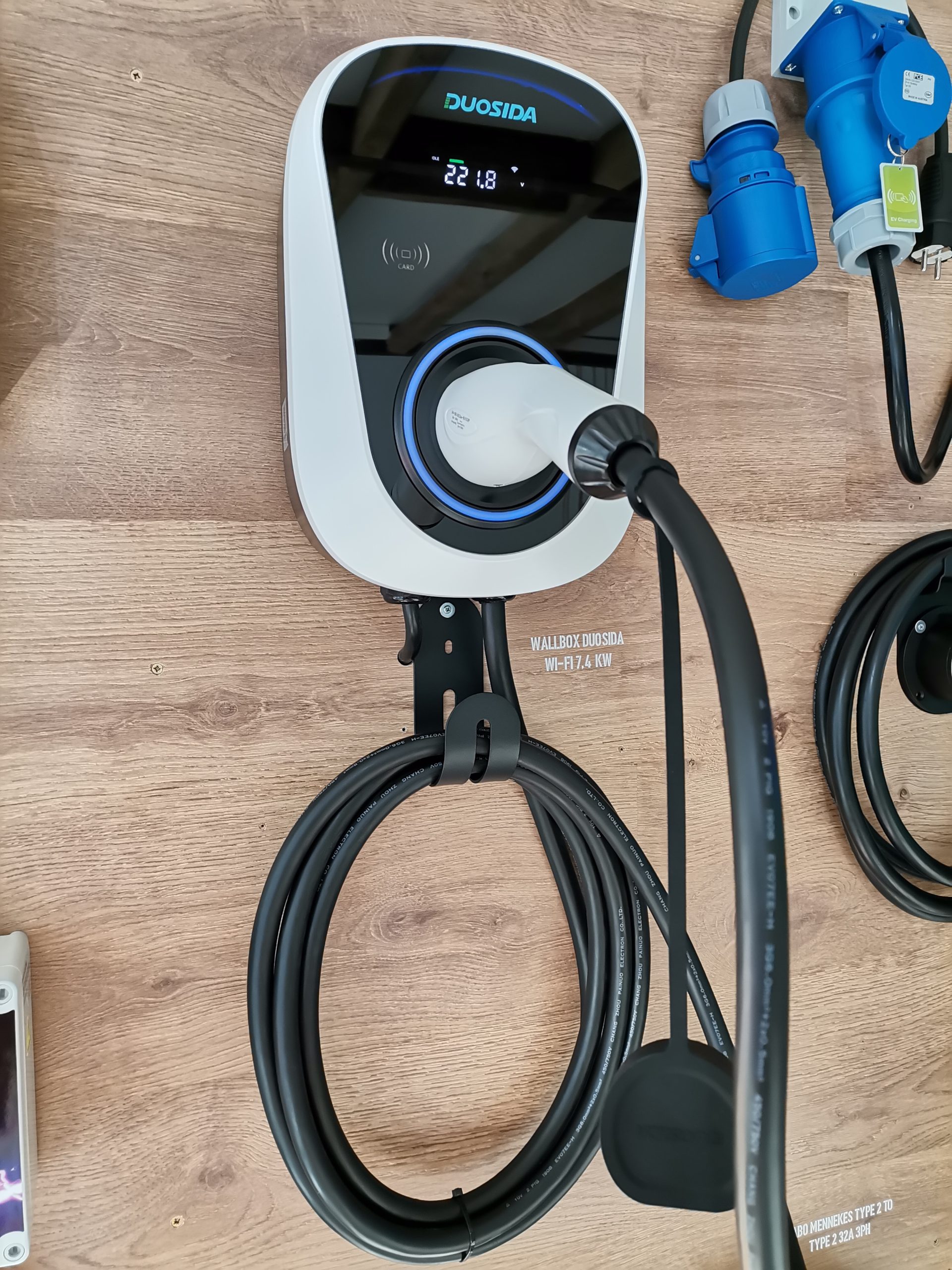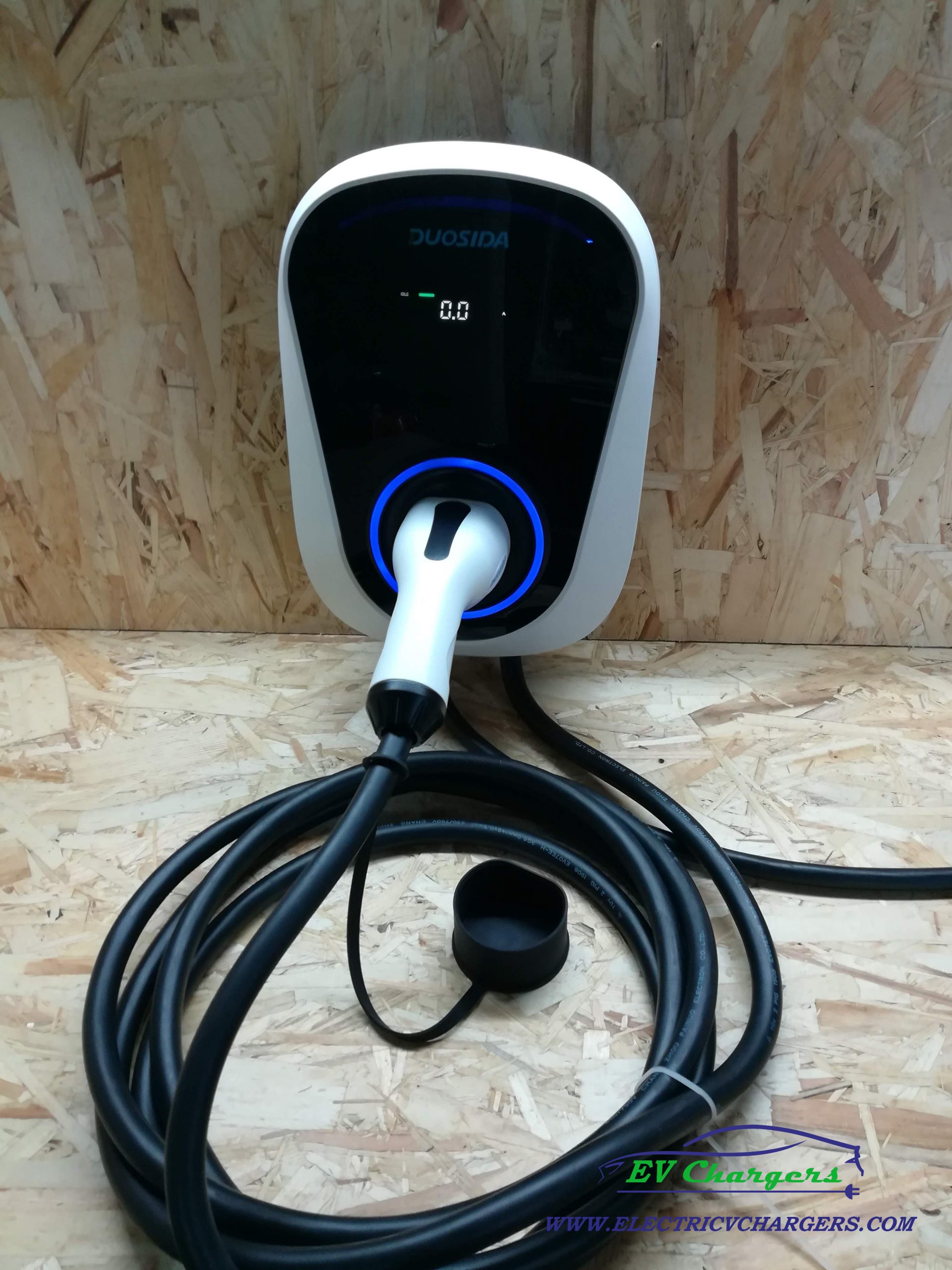 Esta Wallbox Duosida regulável entre 6A-32A é a wallbox ideal para uma instalação monofasica devido ao facto de poder ser controlada por wi-fi e app, dispõe de um pequeno display informativo com dados referentes ao carregamento.