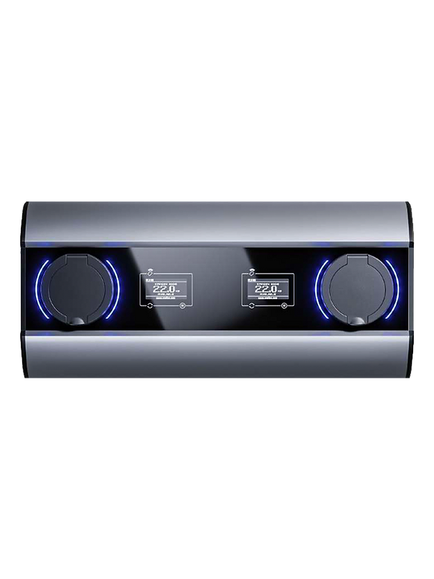 Esta wallbox é totalmente configuravel, está equipada com dois módulo RFID e também pode fazer parte de uma rede de estação de carregamento e ainda pode estender sua funcionalidade com os módulos Bridge e MID. Tem a possibilidade de poder carregar 2 carros em simultâneo até 22kw cada.