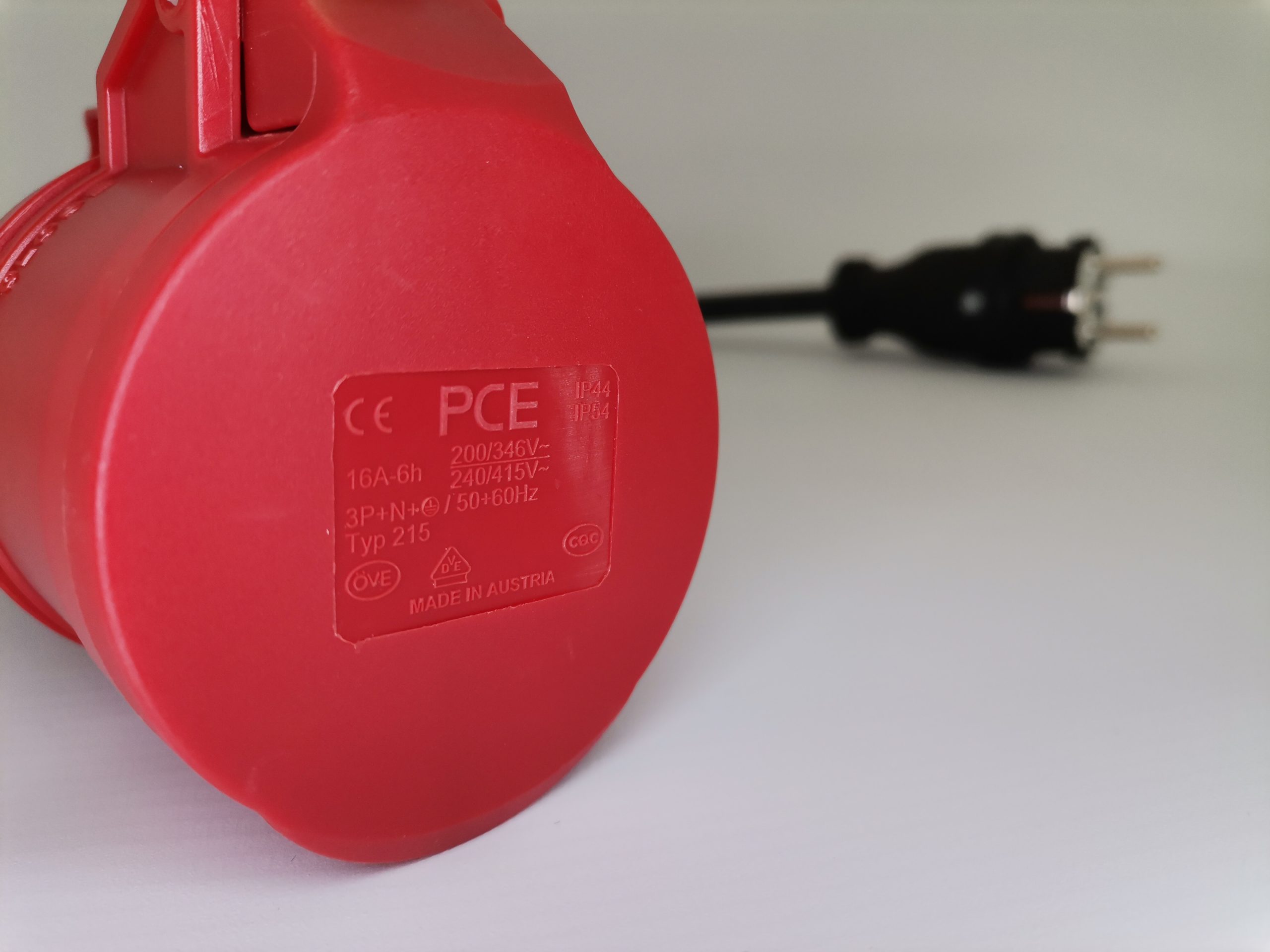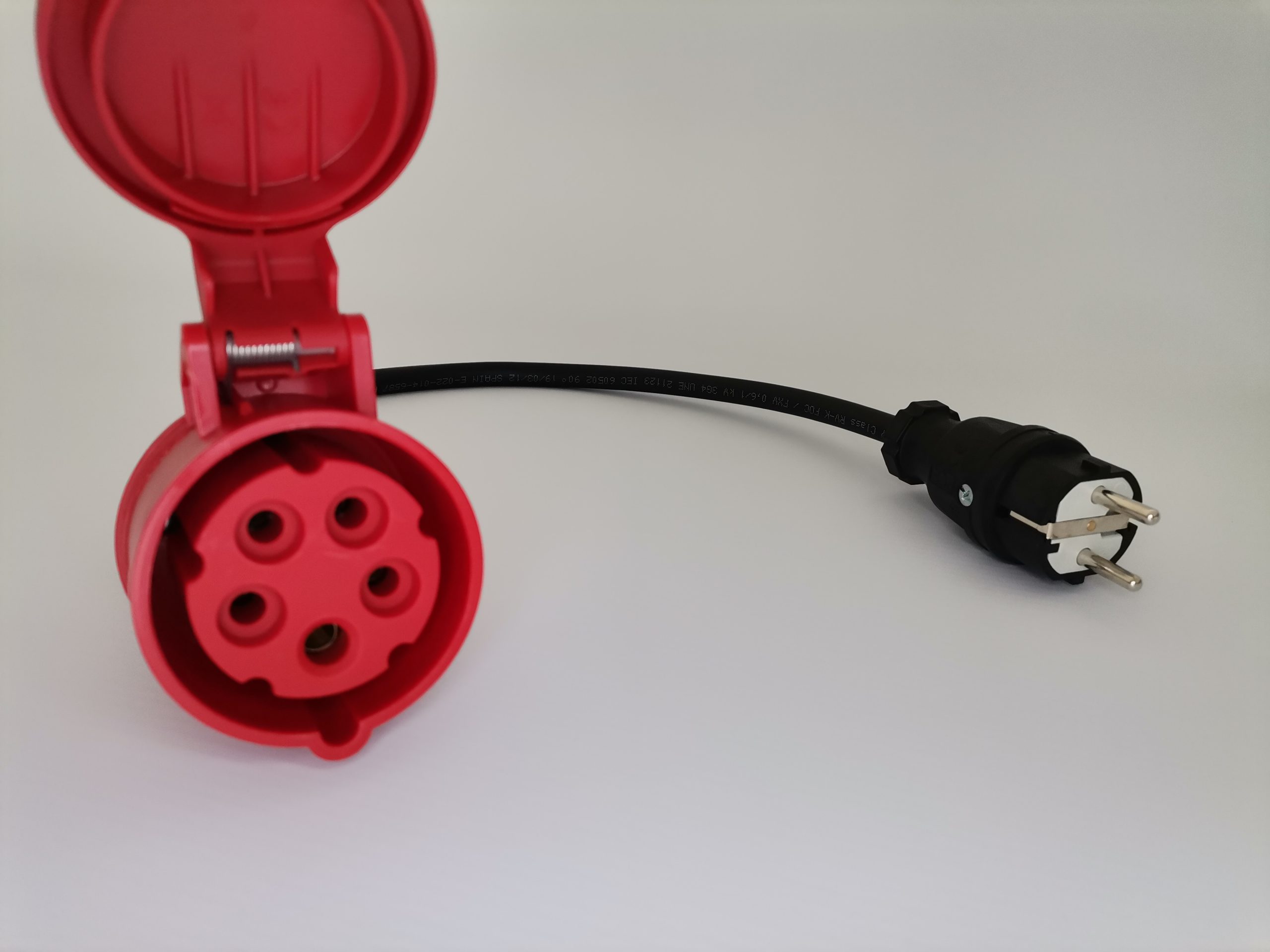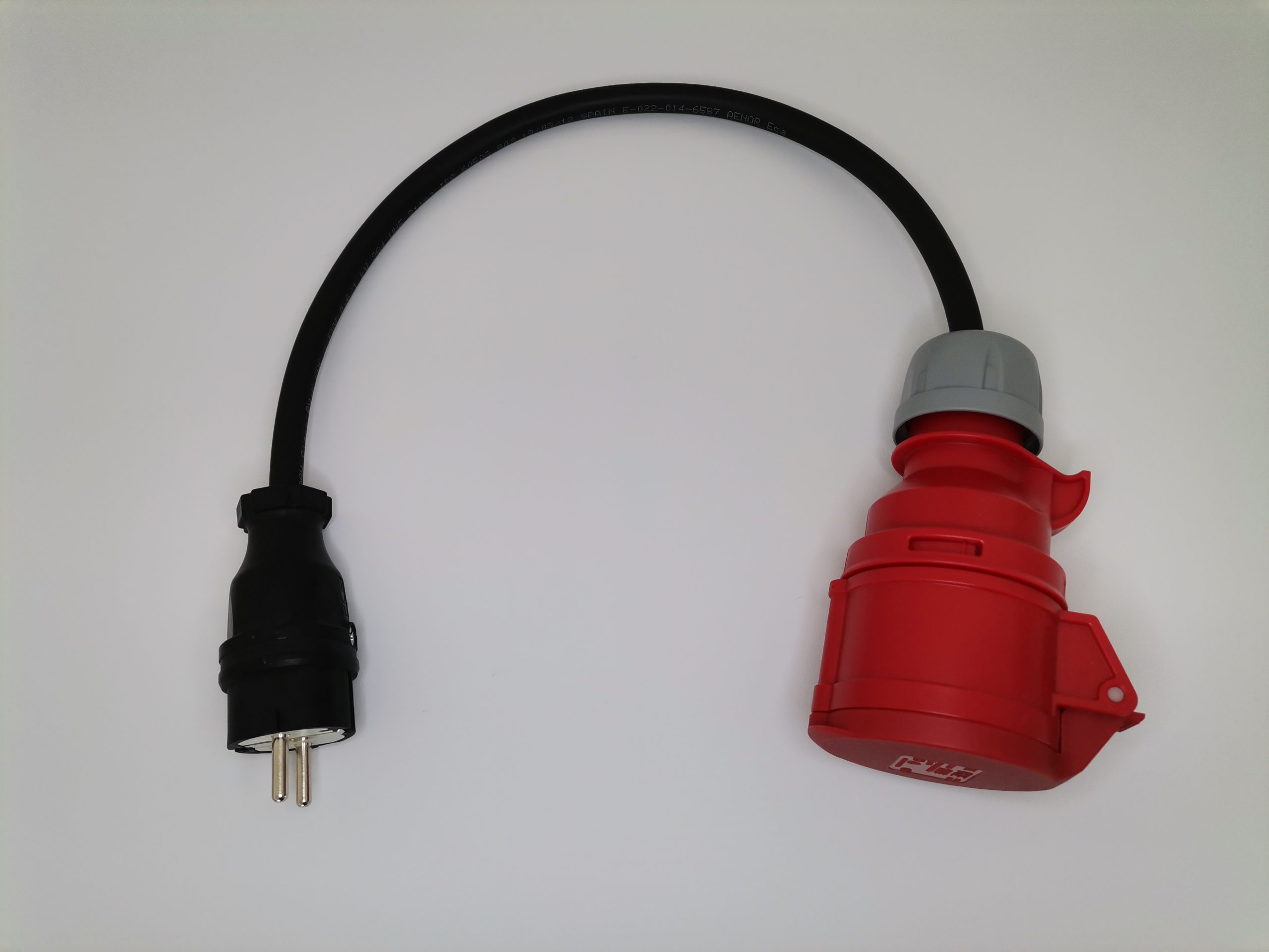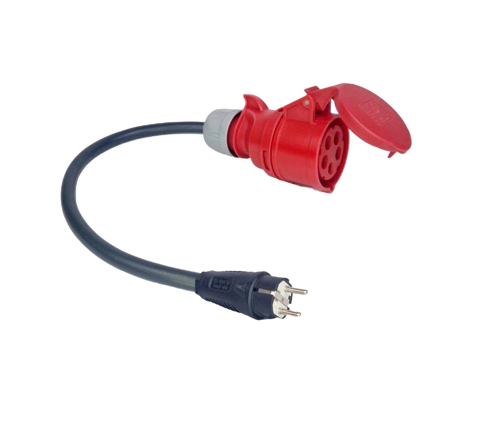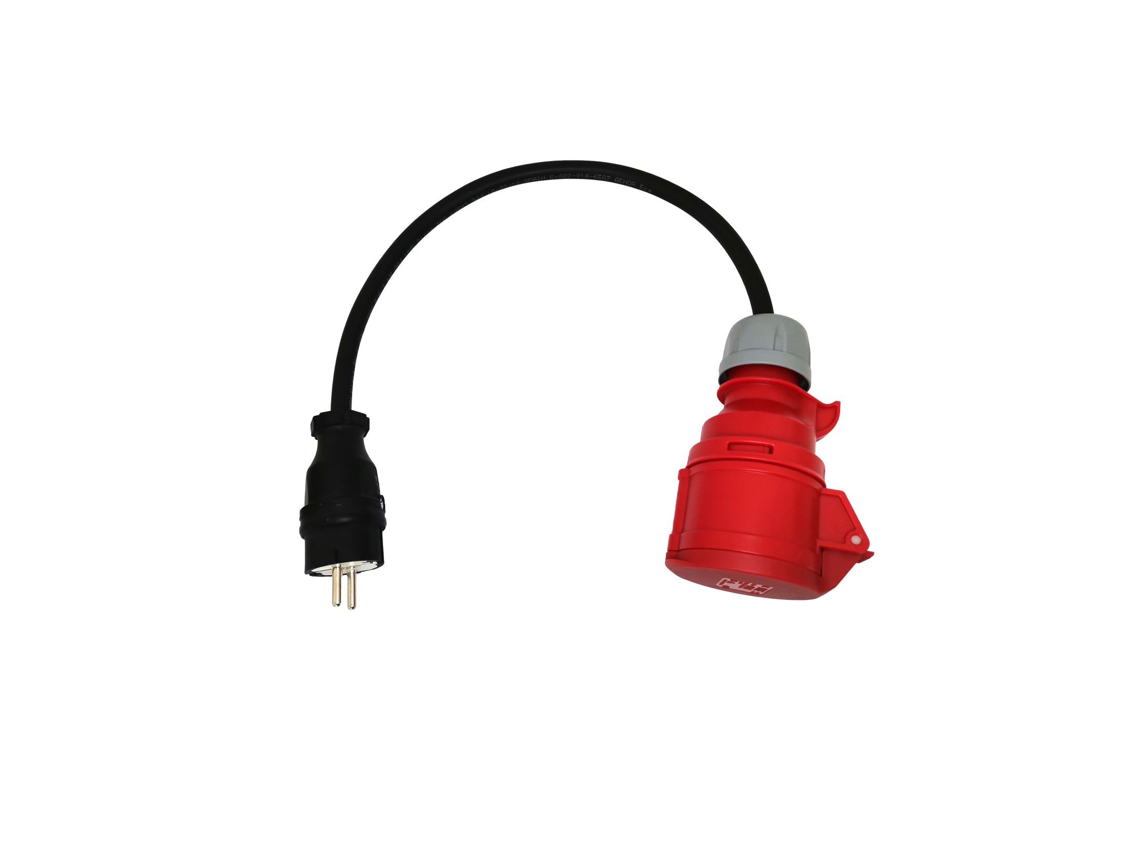 Adaptador de 60cm com cabo 3G4, fichas CEE 16A 3Phase Fêmea PCE e Schuko Macho PCE de elevado IP, terminais cravados e com isolamento.
